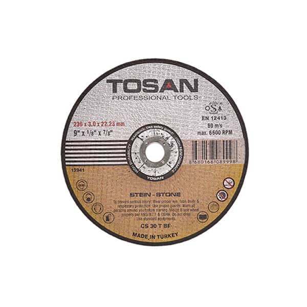 صفحه برش سنگ توسن با قطر 230 میلی متر و ضخامت 3 میلی متری در حال تولید با مطابق استاندارد جهانی و کیفیت مناسب.